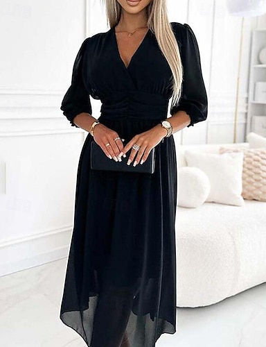 Per donna Abito Midi Abito nero Vestito Casual Elegante Moda Moderno Quotidiano Uscire Weekend Vestibilità regolare Semplice Manica 3/4 Scollo a V Blu Nero Verde Primavera Autunno