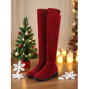 stivali rossi sopra il ginocchio da donna: stivali alla moda per le feste di Natale invernali, look casual per le feste e gli eventi festivi