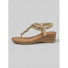 Sandali da donna con zeppa dorata e cinturini incrociati – sandali comodi con cinturino regolabile e supporto plantare, ideali per viaggi e passeggiate in giardino. &abbigliamento quotidiano