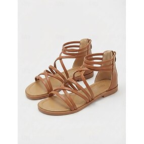 sandali gladiatore da donna con allacciatura alla caviglia in marrone, cerniera e fibbia – stivali boho piatti e aperti per festival estivi, campeggio e abbigliamento casual all'aperto