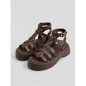 Sandali gladiatore con plateau marroni da donna – sandali casual intrecciati con cinturini regolabili con fibbia, scarpe estive leggere per viaggi e vacanze &abbigliamento quotidiano