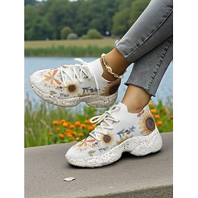 floreale bianco da donna &scarpe da ginnastica con plateau Flyknit e stampa a farfalla, scarpe casual slip-on con suola spessa per camminare, viaggi e passeggiate all'aperto &abbigliamento quotidiano