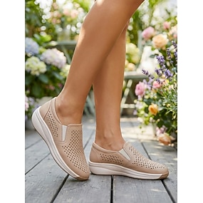 Scarpe con zeppa casual beige da donna: comodi mocassini con plateau da indossare tutti i giorni e per i viaggi estivi.