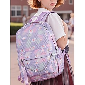 Zaino scolastico floreale per ragazze – zaino leggero trapuntato con decorazioni a catena e tessuto resistente all'acqua per studenti adolescenti e per l'uso nelle scuole medie