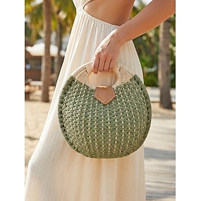 Borsa tote rotonda da donna in paglia, disponibile in diversi colori, ideale per vacanze al mare, viaggi in resort, outfit estivi casual e per un look boho di tutti i giorni.