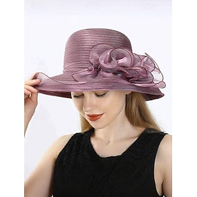 Elegante cappello da donna in paglia a tesa larga con motivo floreale, nastro e dettagli in perle, perfetto per feste estive in giardino, eventi all'aperto e matrimoni.