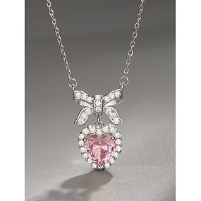 collana da donna con ciondolo a forma di cuore in lega con design a fiocco, disponibile in bianco e rosa, perfetta per San Valentino