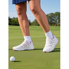 scarpe da golf casual con lacci da donna | scarpe da ginnastica leggere e antiscivolo per golfiste | design elegante rosa e bianco per allenamento e gioco