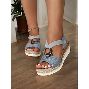sandali con zeppa espadrillas boho da donna con dettaglio anello metallico - scarpe estive con cinturini per abbigliamento casual e da spiaggia