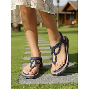 sandali infradito intrecciati blu navy da donna - comodi sandali bassi con cinturino e supporto plantare, eleganti scarpe estive bohémien per passeggiate in resort, vacanze tropicali & giro turistico
