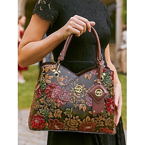 Borsa vintage da donna in similpelle con motivo floreale in rilievo: elegante borsa a tracolla retrò per donne, matrimoni, feste e occasioni formali