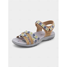 sandali sportivi beige da donna con cinturini elastici e suola ammortizzata per l'abbigliamento casual estivo e il comfort all'aria aperta
