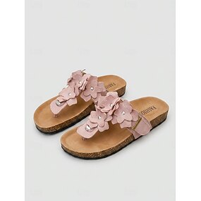 Sandali infradito da donna rosa con stampa floreale: ciabatte basse con plantare morbido e decorazione floreale 3D, scarpe estive leggere e facili da indossare, perfette per le vacanze al mare e le
