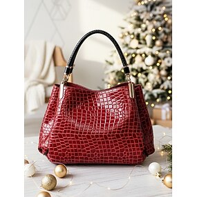 borsa a mano natalizia da donna in similpelle con stampa coccodrillo, perfetta per le feste, disponibile in rosso, blu e nero: elegante borsa a tracolla invernale con tracolla regolabile e dettagli dorati