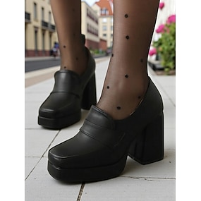 mocassini con plateau neri da donna - scarpe slip-on retrò con tacco a blocco spesso per l'ufficio, lo street style e gli outfit di ispirazione vintage