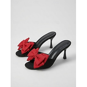 Sandali da donna chic neri e rossi con fiocco - tacco a spillo retrò con fiocco oversize &cinturino alla caviglia per le vacanze estive e gli appuntamenti romantici &abbigliamento elegante per tutti i