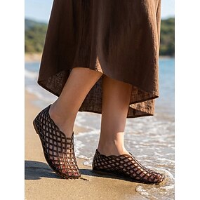 Eleganti ballerine nere da donna in gelatina - scarpe da acqua traspiranti con struttura a reticolo e suola morbida, perfette per vacanze al mare e passeggiate in riva al mare. &abiti estivi casual