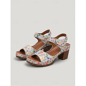 Sandali da donna colorati con tacco a blocco e stampa floreale – sandali comodi e casual a punta aperta con cinturino alla caviglia per giardino e vacanze &abbigliamento quotidiano