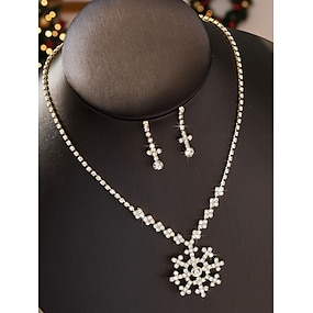 set di gioielli da donna con cristalli a forma di fiocco di neve, collana e orecchini con strass scintillanti in tonalità oro, elegante accessorio invernale per feste di Natale, matrimoni ®ali