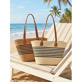 Borsa tote da donna in stile boho a righe intrecciate, borsa a tracolla in paglia di grande capacità per vacanze al mare, viaggi in resort e uso quotidiano casual.