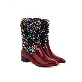Stivaletti alla Caviglia in Pelle Verniciata Borgogna con Paillettes da Donna per Mardi Gras - Stivali Sparkly in Stile Festival Ideali per Parate di Carnevale Feste in Costume Festival di Strada e