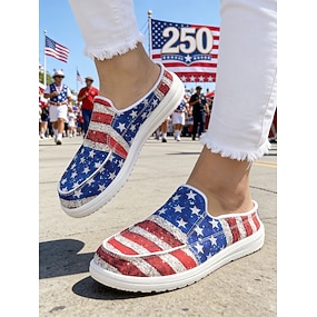 Stati Uniti 250° Anniversario Mules Comode con Stampa della Bandiera Americana Rossa e Blu da Donna – Scarpe Slip-On in Tela per USA Quattro Luglio Eventi All'aperto Viaggi e Uso Quotidiano