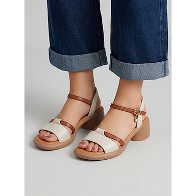 Sandali da donna bicolore con tacco a blocco e cinturino alla caviglia – tacco comodo a punta aperta, sandali leggeri e imbottiti per feste in giardino, viaggi &abbigliamento casual