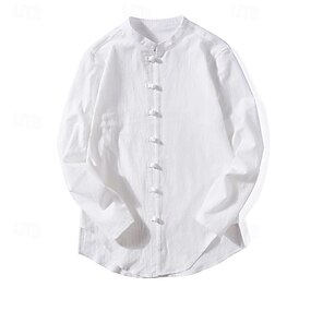 Per uomo Camicia Camicia di lino Camicia in cotone e lino Camicia con colletto cinese Camicia con colletto alla coreana Camicia casual Semplice Vacanza Camicia hawaiana Bianco Blu marino Cachi Azzurro