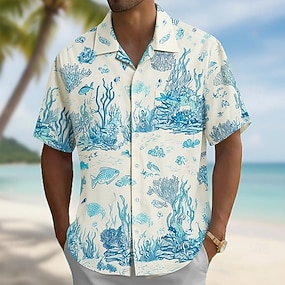 Per uomo Pesce Creature marine Corallo Camicia Camicia con colletto cubano Camicia hawaiana estiva Manica Corta Hawaiano Vacanza Ferie Abbigliamento mare Estate Primavera Camicia con colletto camp
