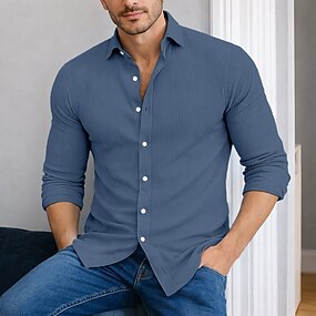 Per uomo Camicia Camicia di Velluto a Coste Camicia con Bottoni Blu Nero Bianco Blu marino Verde Manica Lunga Semplice Collo ripiegato Casuale Quotidiano Bottonato Abbigliamento Moda Streetwear