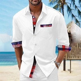 Per uomo Camicia Camicia di lino Camicia Estiva Camicia da Spiaggia Plaid Vacanza Casuale Bianco Rosa Blu marino Azzurro Manica Corta Colletto Estate Abbigliamento