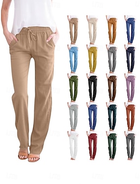 Per donna Pantaloni in cotone e lino Chinos Pantaloni Estivi Vacanza Streetwear Essenziale Lunghezza intera Vita media Semplice Tasca Comodo Leggero Traspirante Inelastico Quotidiano All'aperto