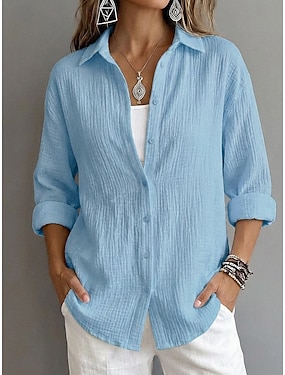 Per donna Camicia Blusa Finto cotone e lino Bottoni Semplice Casual Manica Lunga Colletto a Camicia Top Regolari Quotidiano Ferie Uscire Bianco Estate Primavera