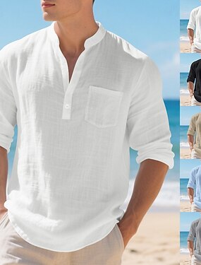Per uomo Camicia Camicia di lino Camicia popover Camicia Estiva Camicia casual Camicia da Spiaggia Semplice Vacanza Casuale Nero Bianco Cachi Grigio scuro Manica Lunga Colletto alla coreana Primavera
