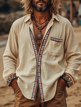 Per uomo Motivo Geometrico Etnico Cultura indiana Camicia Camicia con Bottoni Camicia con colletto alla coreana Manica Lunga Vintage Retrò Quotidiano All'aperto Vacanza Primavera Autunno Collo alla