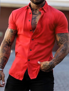 Per uomo Camicia Camicia Estiva Camicia casual Camicia con Bottoni Nero Giallo Rosa Rosso Blu marino scuro Manica Corta Lettera Collo ripiegato Streetwear Casuale Bottonato Abbigliamento Moda Casual