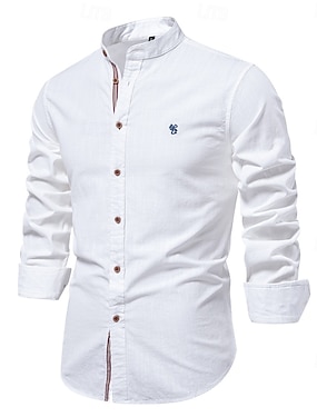 Per uomo Camicia Camicia casual Camicia con colletto alla coreana Camicia con Bottoni Bianco Kaki Manica Lunga Semplice Collo alla coreana Vacanza Feste Abbigliamento Elastene Poliestere Moda Casual