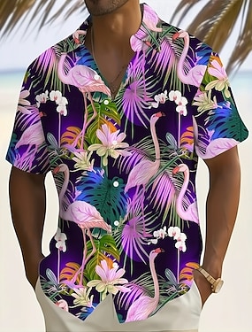 Per uomo Fenicottero Fiori tropicali Foglia di palma Camicia hawaiana estiva Camicia con Bottoni Camicia Aloha Manica Corta Hawaiano Vacanza Estate Primavera Collo ripiegato Stampa 3D camicie con