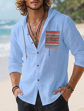 Per uomo Camicia Camicia di lino Camicia Estiva Camicia da Spiaggia Camicia con Bottoni Camicia con cappuccio Boho Casuale Vacanza Blu Bianco Rosa Rosso Manica Lunga Con Cappuccio Estate Primavera