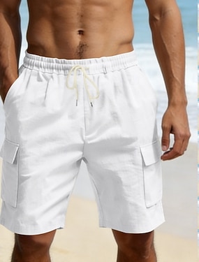 Per uomo Shorts Shorts di Lino Shorts eleganti Pantaloncini Estivi Shorts da Spiaggia Tasca Bottoni Semplice Comodità Traspirante Lunghezza al ginocchio Formale Quotidiano Ferie Vacanza Moda Bianco
