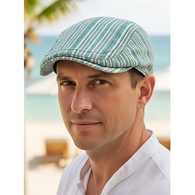 berretto piatto da uomo in cotone a righe, cappello casual da tutti i giorni e da viaggio, vari colori, accessorio leggero per le vacanze estive da uomo
