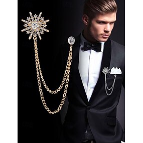 elegante spilla a forma di stella di cristallo con catene dorate – spilla elegante per uomo e donna, perfetta per abiti, matrimoni e occasioni formali