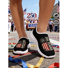 Scarpe slip-on traspiranti patriottiche maschili dell'anniversario dei 250 anni degli Stati Uniti - sneakers con stampa della bandiera USA per il Giorno dell'Indipendenza e abbigliamento casual