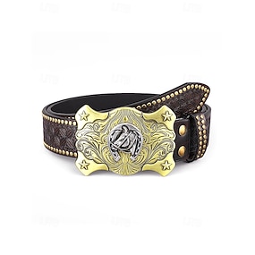 Cintura da uomo in pelle in stile western con fibbia a forma di aquila – design vintage in rilievo con rivetti, ideale per abbigliamento casual e country