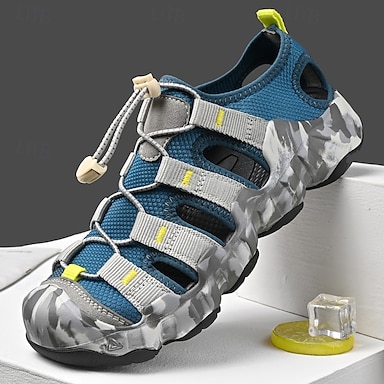 sandali da trekking mimetici blu da uomo con cinturini a chiusura rapida, resistenti e comodi, perfetti per gli sport all'aria aperta e i viaggi avventurosi