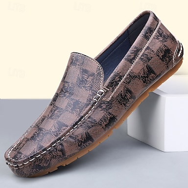 mocassini da guida da uomo marroni stampati, scarpe slip-on casual leggere e comode per l'uso quotidiano, la guida, i viaggi, gli outfit del fine settimana, l'ufficio e lo stile smart casual da gentiluomo