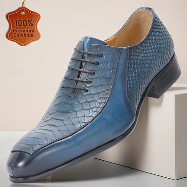 scarpe oxford da uomo in pelle di vacchetta di prima qualità con stampa serpente – scarpe casual eleganti blu per occasioni formali e da festa