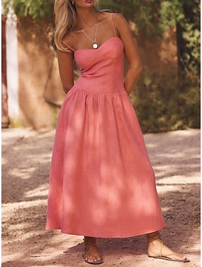 Per donna Abito Midi Finto cotone e lino Abito a Tubino Vestito Estivo Vestito Casual Elegante Moda Moderno All'aperto Vacanza Uscire Vestibilità regolare Semplice Senza Maniche Spalline Rosa Estate