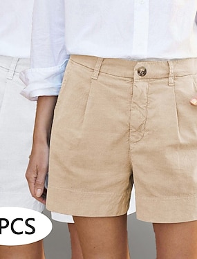 multi pack 2 pezzi pantaloncini da donna in cotone pantaloncini estivi chinos vacanza streetwear basic naturale tinta unita semplice cerniera tasca fibbia traspirante morbido anelastico quotidiano strada uscire kaki+nero
