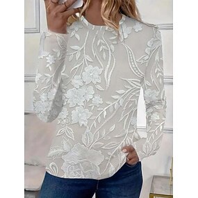 T shirt da donna a maniche lunghe con scollatura a girocollo tunica lunga stampa 3D floreale elegante vintage top regolari quotidiani uscita weekend stampa perla precaldo